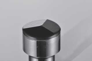 将金刚石复合钻齿的金刚石平面结构生产成三棱锥形,此异形三棱锥金刚石复合齿钻头 在钻探过程中改变了钻头上钻齿在钻入岩层的角度,提升主齿和钻头整体的稳定性,对岩层的切削和钻入能力提升显著,并且有效减小磨损速率,并对钻探过程中产生的岩石屑能迅速排开,减小钻头钻进阻力,提高机械钻速,大大提升异形金刚石组合钻头的钻探效率,在难打地层、复杂地层、硬地层、夹层等地质结构的使用效果显著。